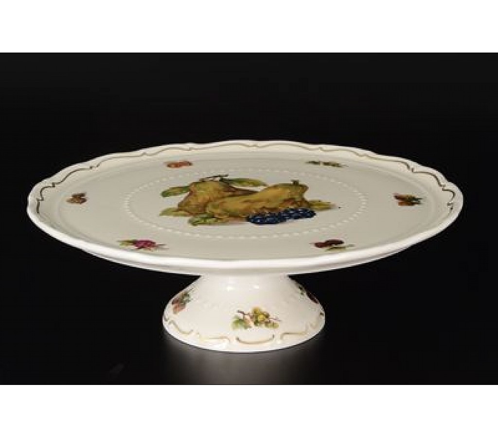 | Тарелка для торта на ножке 30 см Анжелика Слоновая кость Фрукты MZ | |