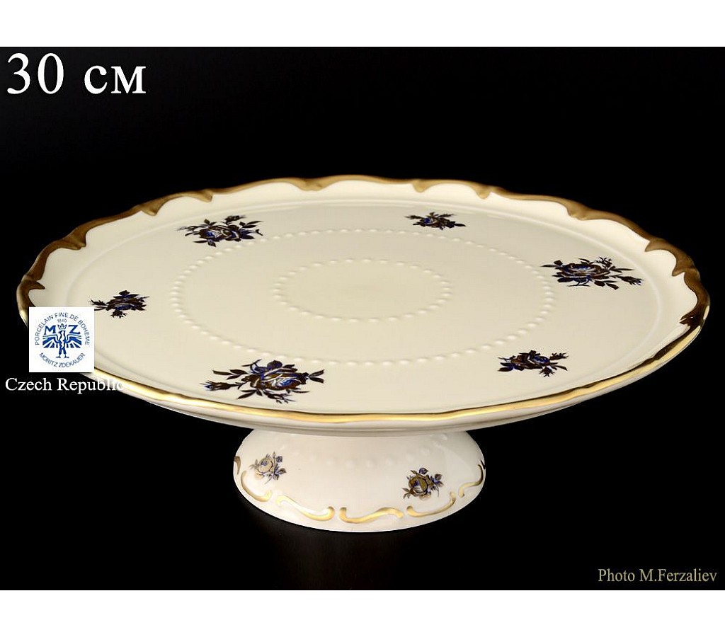 | Тарелка для торта на ножке 30 см Анжелика Слоновая кость синяя Роза MZ | |