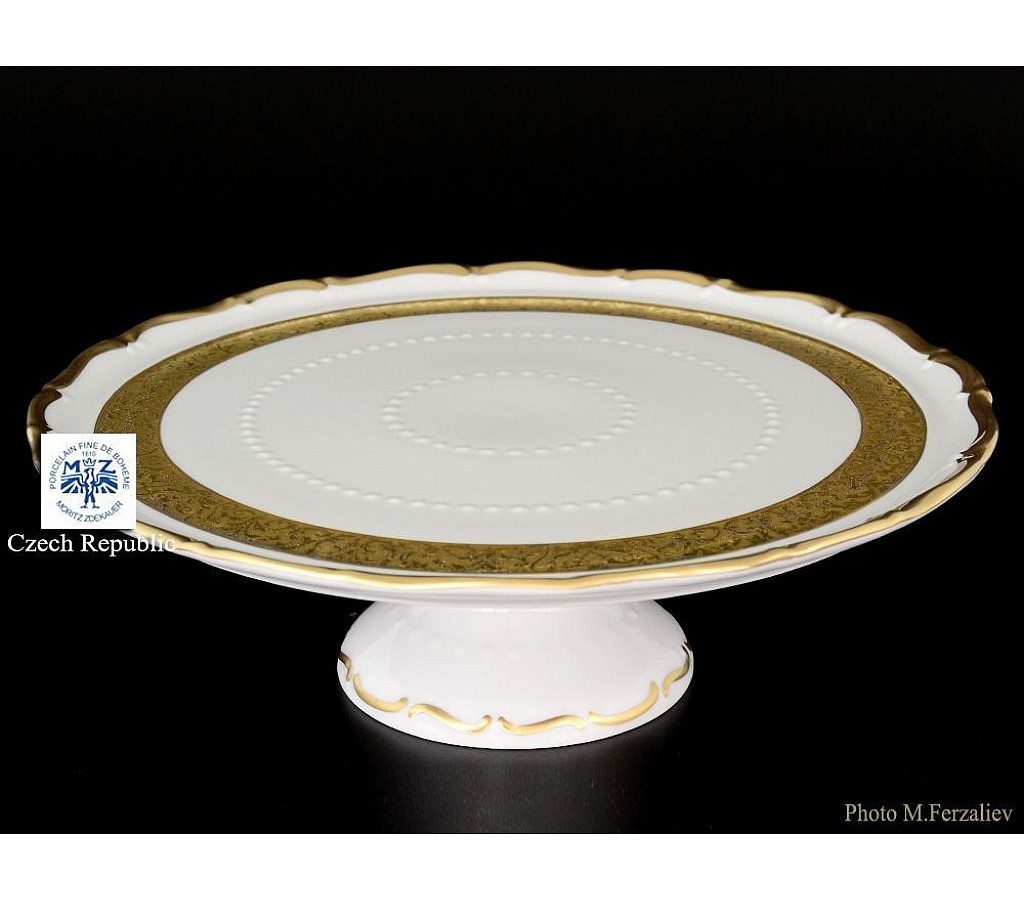 | Тарелка для торта на ножке 30 см Анжелика Золотая лента MZ | |