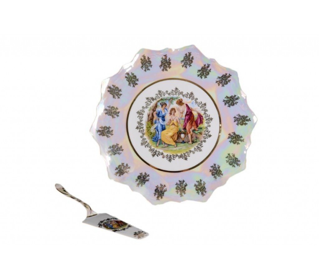 | Тарелка для торта с лопаткой 30 см Мадонна перламутр Корона Queens Crown | |