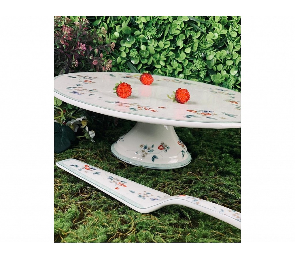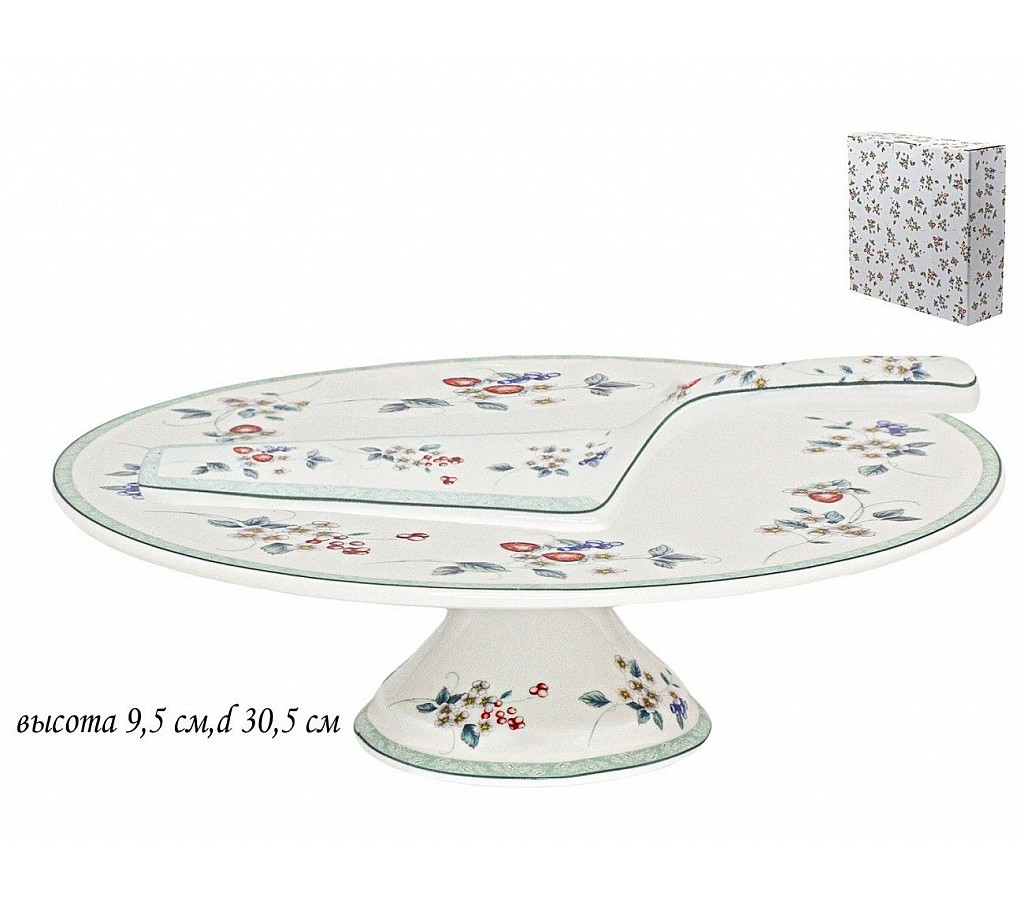 Тортовница с лопаткой Земляника Lenardi. Диаметр 30,5 см. Высота 9,5 см. Подарочная коробка.
