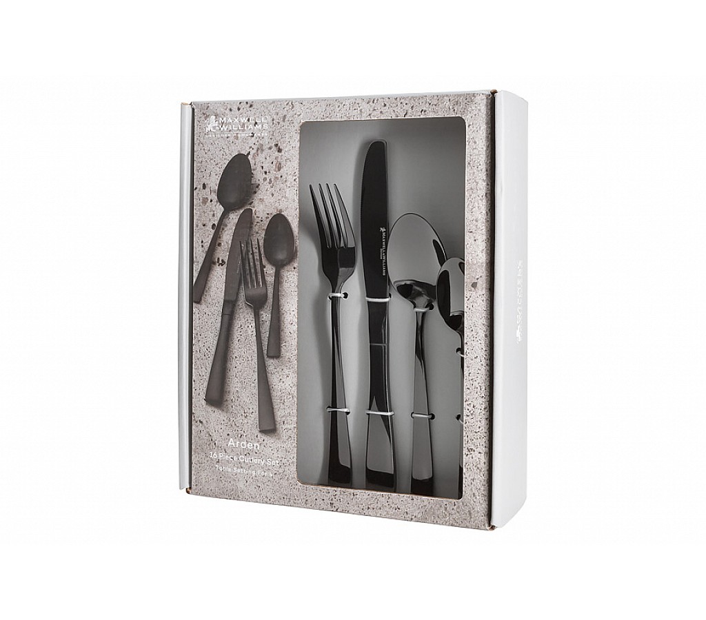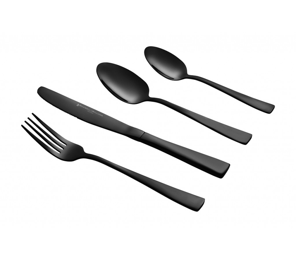 Набор столовых приборов Arden, чёрный, 4 персоны, 16 предметов. 4 столовые ложки, 4 столовые вилки, 4 столовых ножа, 4 чайные ложки. Мыть тёплой водой с применением мягких моющих средств. Не использовать абразивные вещества. Можно мыть в посудомоечной машине