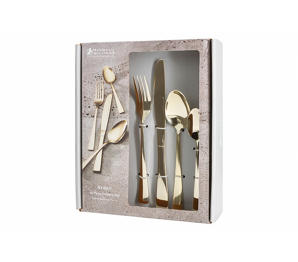Набор столовых приборов Arden, цвет шампанского, 4 персоны, 16 предметов. 4 столовые ложки, 4 столовые вилки, 4 столовых ножа, 4 чайные ложки. Мыть тёплой водой с применением мягких моющих средств. Не использовать абразивные вещества. Можно мыть в посудомоечной машине