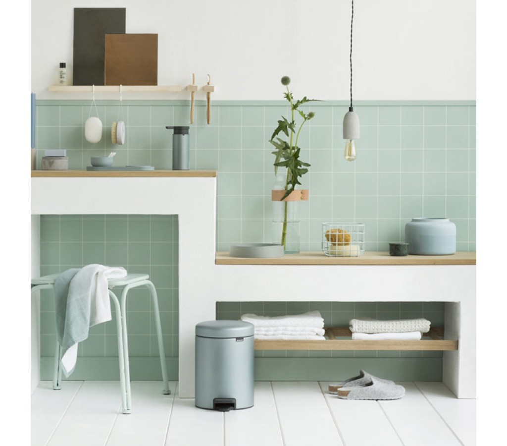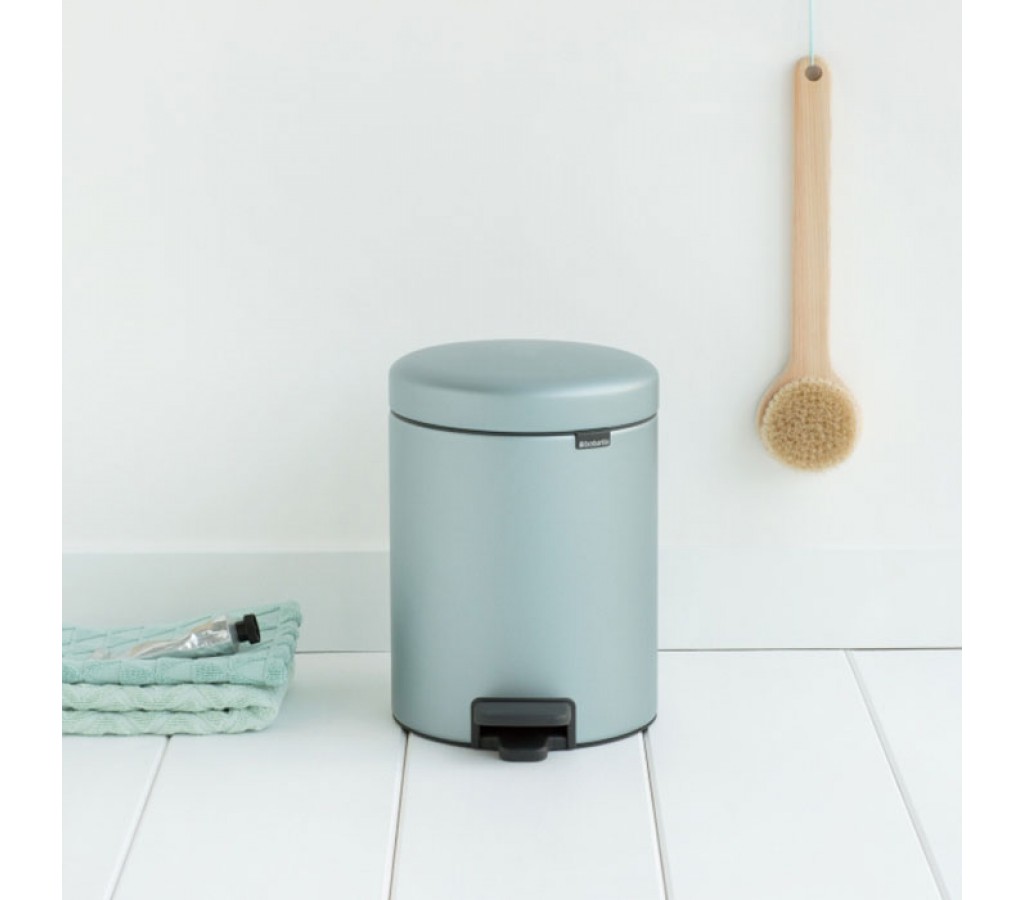 Мусорный бак newicon (5 л), Мятный металлик Brabantia оснащен педалью для открытия и закрытия крышки. Устанавливать его можно в ванной комнате, туалете и даже детской.